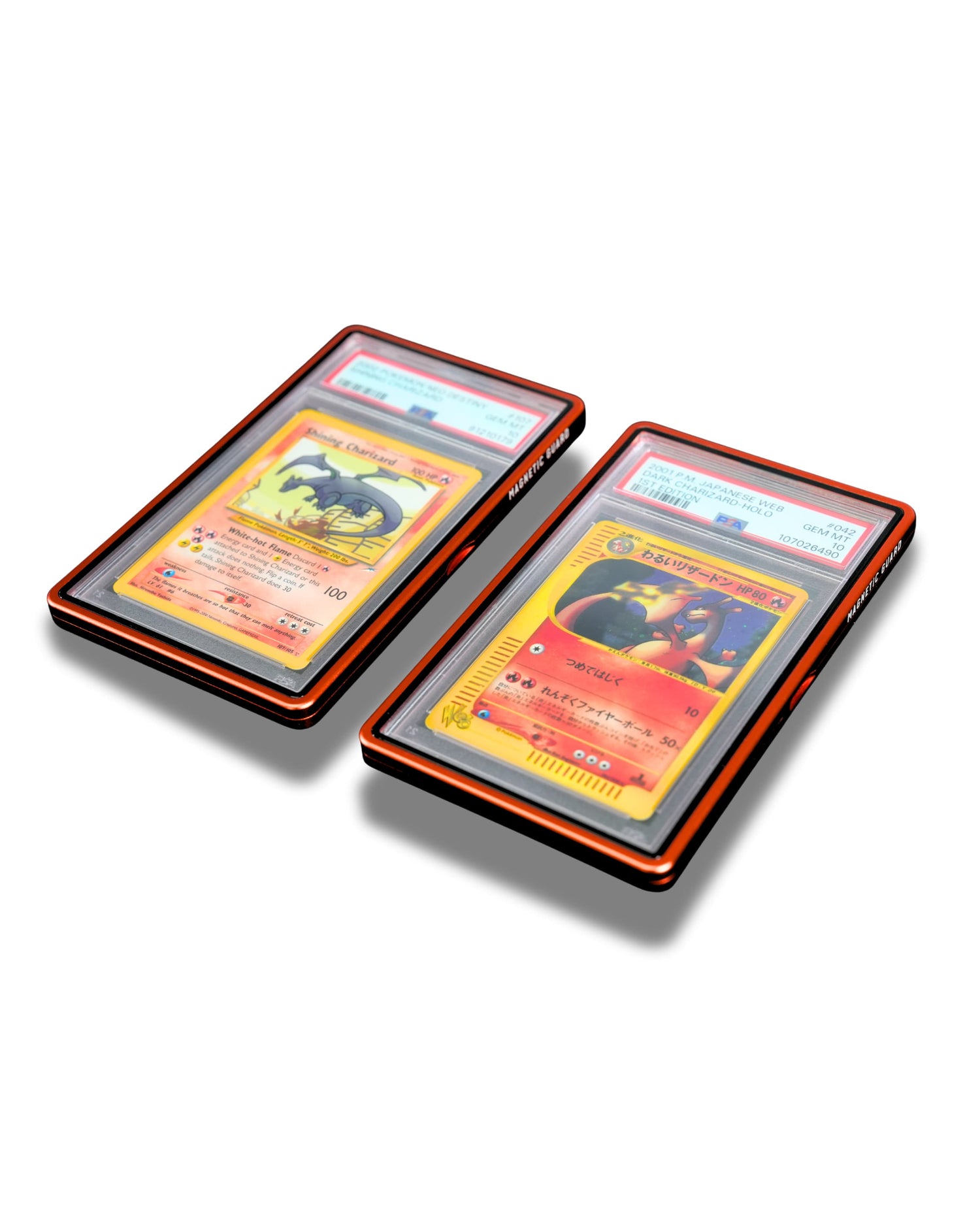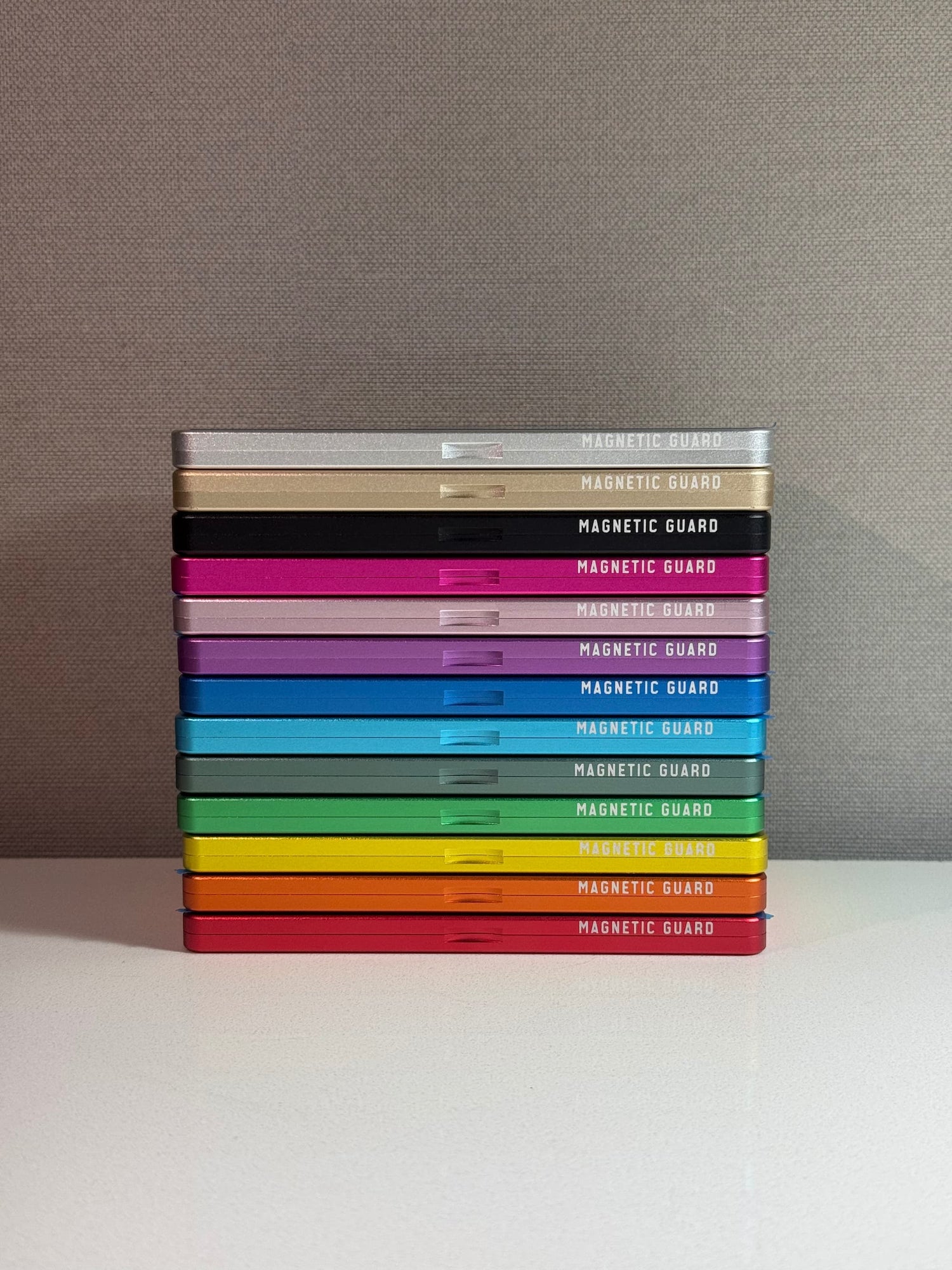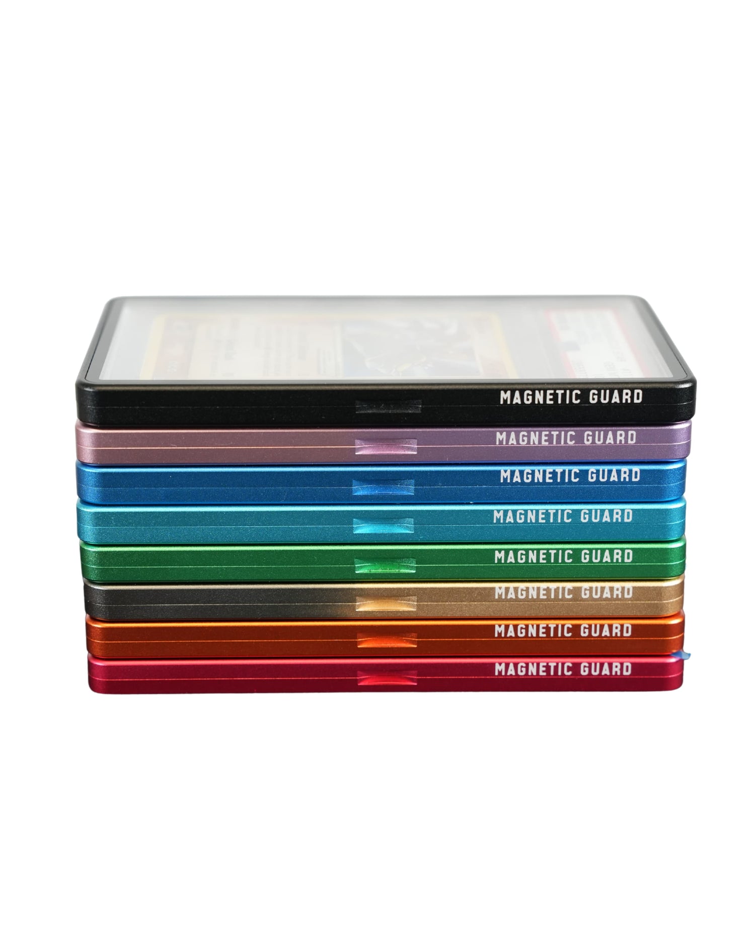 Protect your Pokémon or collectible cards with the Magnetic Guard for Graded Cards. This single-piece protector, available in 13 vibrant colors (red, black, gold, purple, deep blue, light blue, silver, vibrant pink, orange, dark green, green, pink, yellow), features a crystal-clear, UV-resistant shell and a secure magnetic closure to keep your graded cards pristine and stylish.